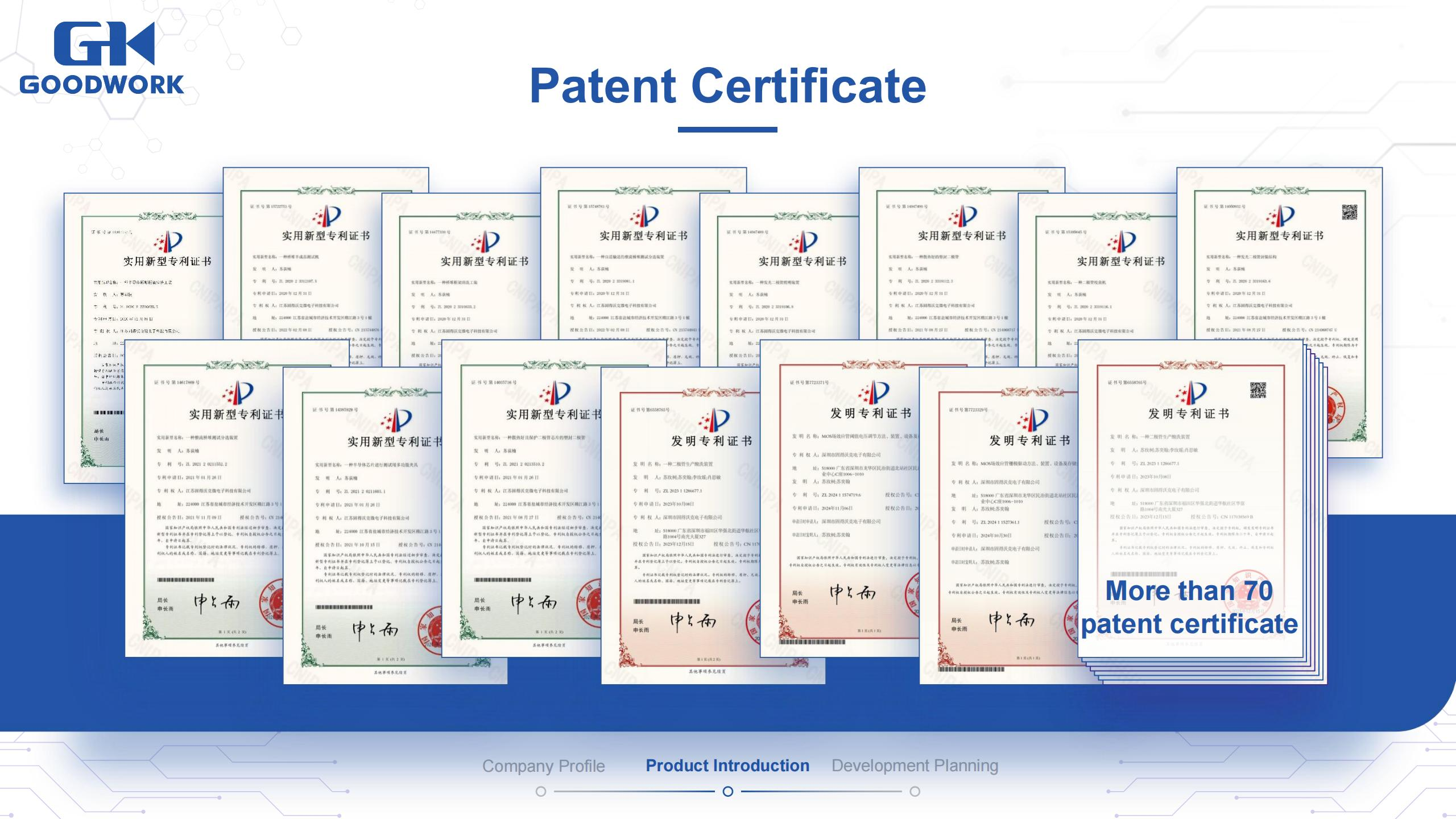 - With more than 70 authorized patents, Goodwork continues to advance technology through practical innovation and research.