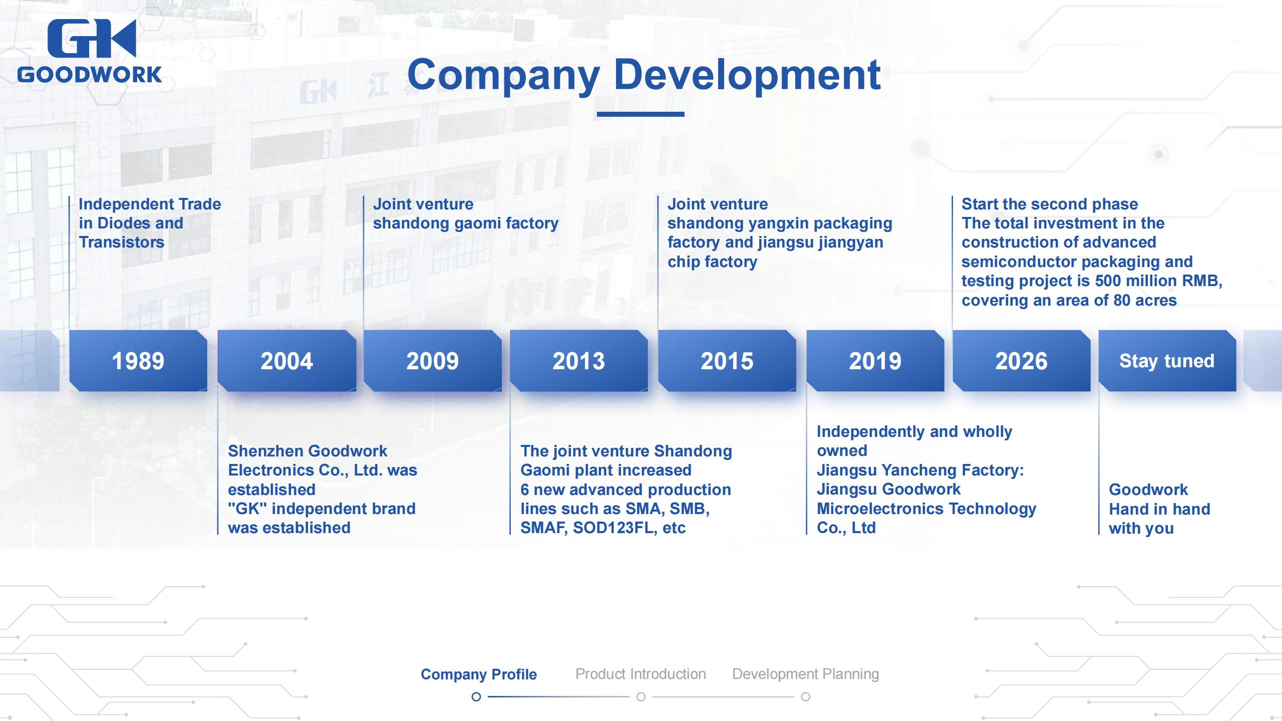 Shenzhen Goodwork Electronics Co., Ltd (GOODWORK) Foundedin 2004, it is a national high-tech enterprise specializing in R&D Specialized and Sophisticated SMEs, production and sales of semiconductor discrete devices.