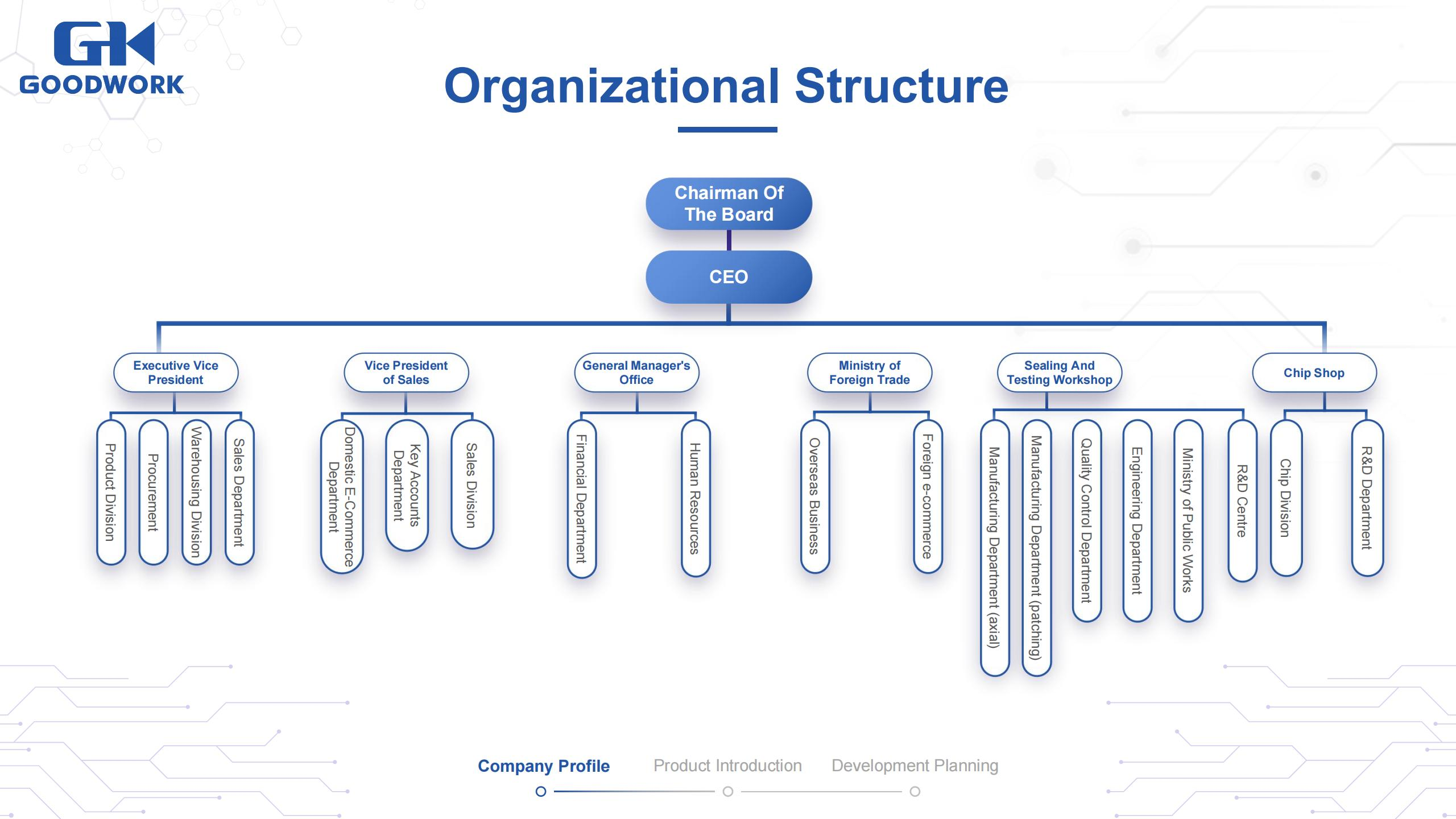 - Our organizational structure begins with a focused leadership team led by the Chairman and CEO. Each division operates with clear roles, ensuring decisions move efficiently from the top to every operational level.