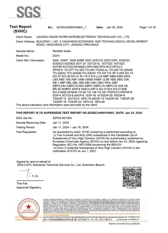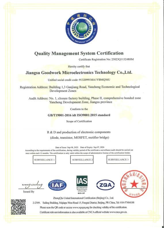 Shenzhen Goodwork Electronics Co., Ltd (GOODWORK) Foundedin 2004, it is a national high-tech enterprise specializing in R&D,Specialized and Sophisticated SMEs, production and sales of semiconductor discrete devices. Headquartered in Shenzhen, its own brand is “GK”