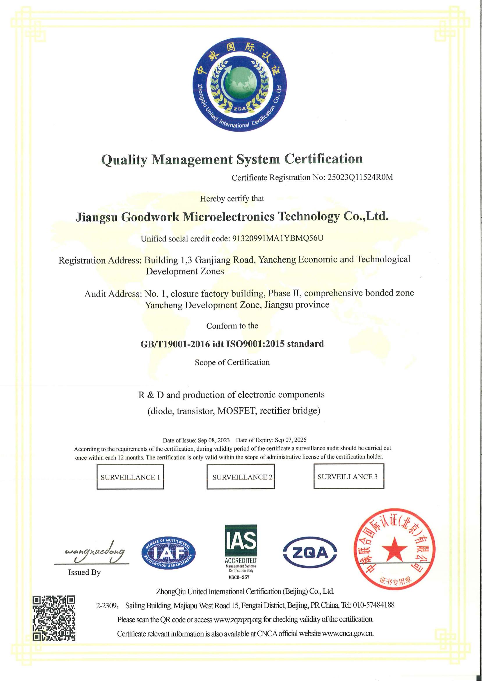 Certification IATF1649 ISO 9001 ISO 14001